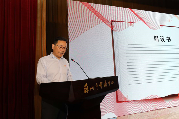 2018年6月14日上午,在蘇州會(huì )議中心,中利集團黨委副書(shū)記周建新代表“兩新”組織黨組織出席蘇州“紅色心橋”品牌啟動(dòng)儀式,上臺宣讀《搭建“紅色心橋”助力鄉村振興》倡議書(shū),并做現場(chǎng)光伏扶貧項目展示。